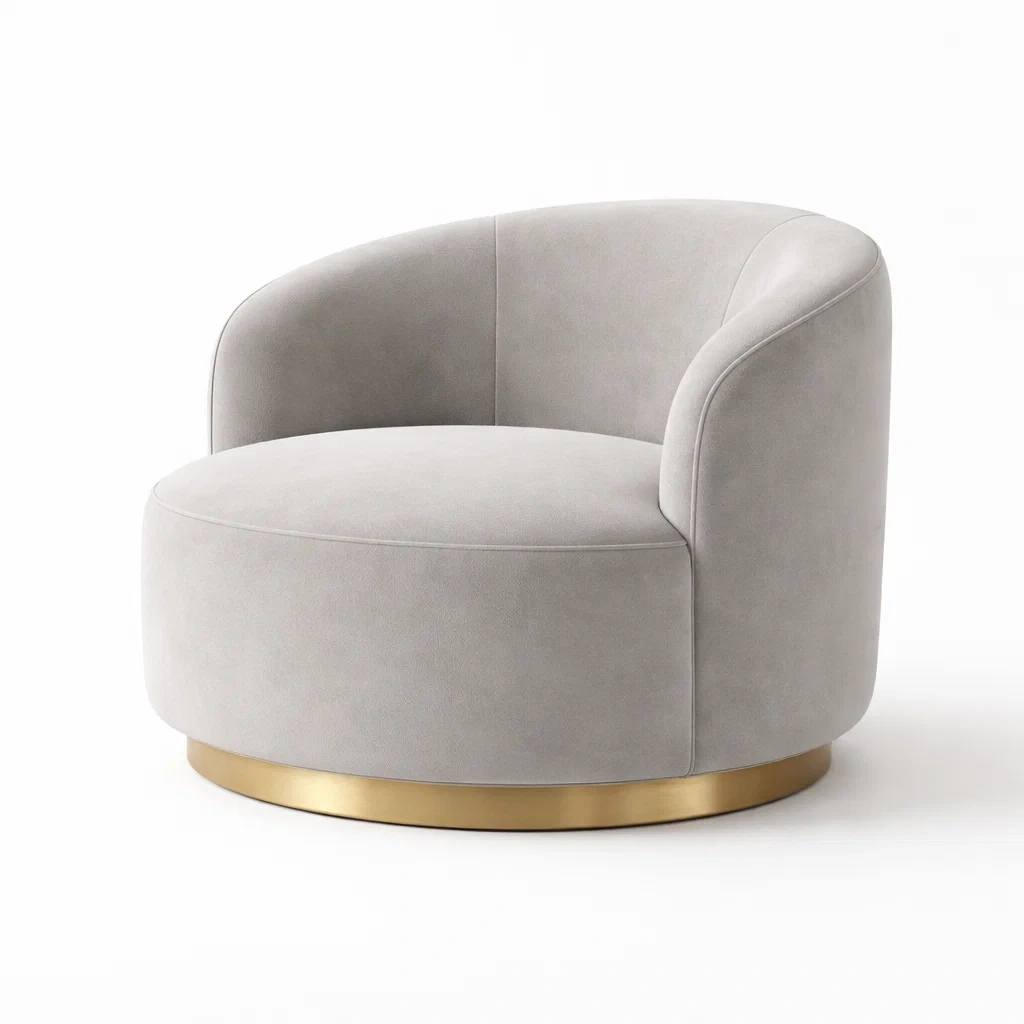 Curved Accent Lounge Chair Fabric Grey With Metal Base
